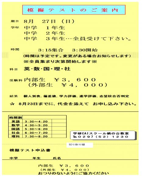 中学模擬テスト 開催のお知らせ ( 教室からのお知らせ )