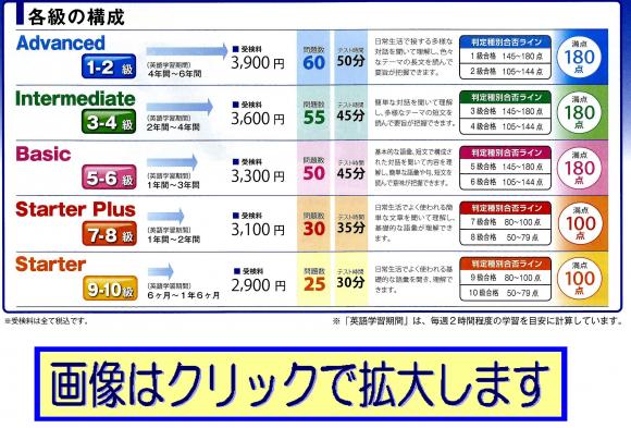 《 JET(TOEICへ直結)子供英語能力判定試験開催 》 従来の暗記や文法読解力(受験英語)ではなく よりコミュニケ-ション英語能力を問うTOEICへ直結する 試験です。 実施日 11月1日〜7日 締め切り 10月2日 費用 表を参照 詳細は、お電話でお問い合わせください。 Tel 0297-52-1230