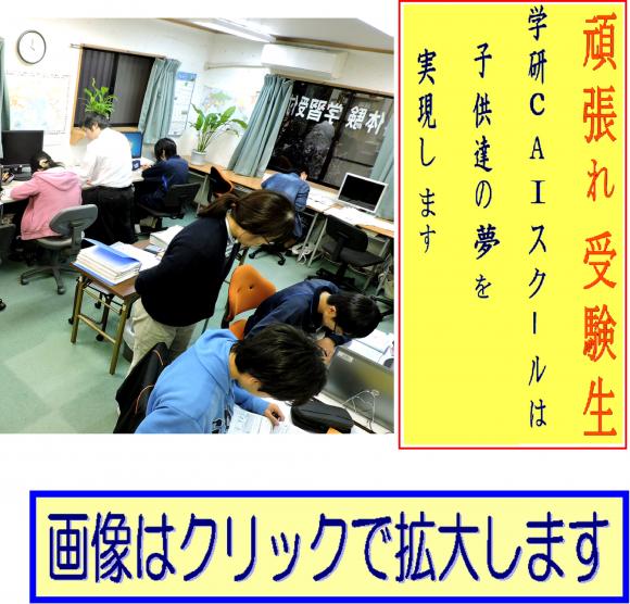 《画像はクリックすると、拡大します》 頑張れ、君なら 必ずできる! 推薦受験も決まり、いよいよ私立受験本番 不安は、高まるでしょうが、これまで勉強してきた 自分を信じて今までどおりに問題に 取り組んでください。 余計な事は考えずに問題を解く事だけ に集中して試験に臨んで下さい。 前日は、早く寝て試験当日の朝は 早起きして下さい。 もちろん、受験票、上履き、定規など 忘れずに、余裕を持って家を出てください。 受験中は、簡単な問題から時間配分を考えて 解いて下さい。 難しい問題に挑戦するより できた問題を必ず見直してポカミス を無くして下さい。 『頑張れ、取手の受験生! 応援してるゾ!!』