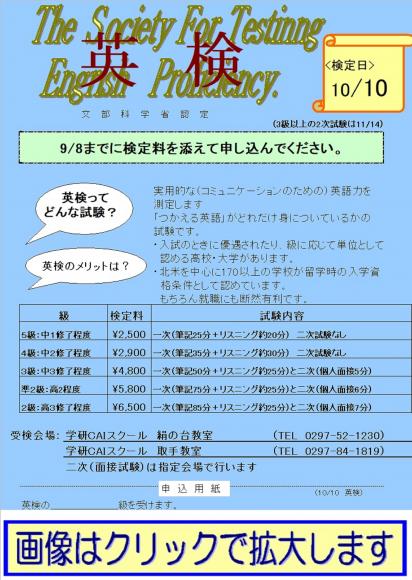 『10月 英語検定 開催のお知らせ』