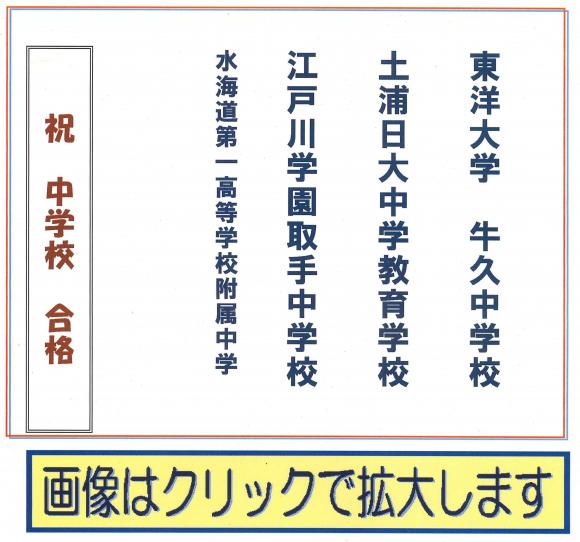 TOP›合格実績›平成 6年度 中学・大学 合格 学研絹の台