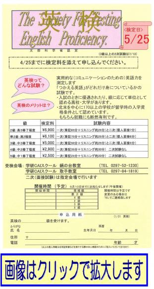 『2025年度第1回実用英語技能検定 開催のお知らせ』 ( 教室からのお知らせ )