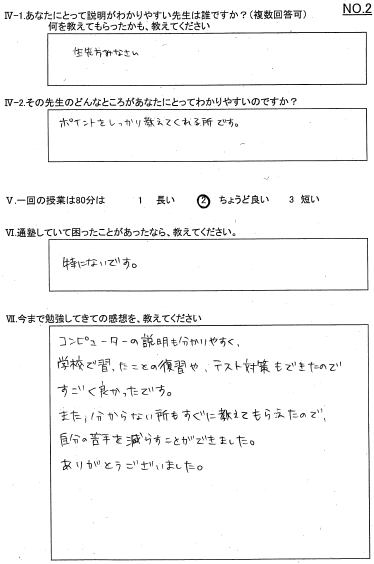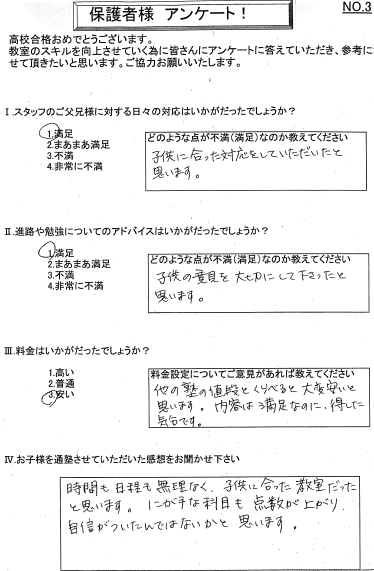 2011年03月14日 月曜日 生徒・保護者様アンケートAさん ( 生徒・保護者様アンケート ) |