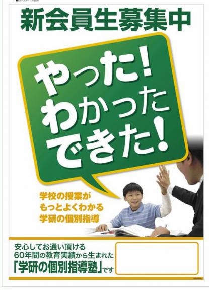 待ってたぞ、夏休み こんにちは、学研CAIスク-ルです。 ついに待ちに待った夏休み に突入だ。 旅行・イベンオ・お祭り・花火 盛り沢山の予定が 目白押し。 でも、楽しんでばかり いると 『 あ 』 と 言う間に終わってしまう のも夏休み。 1学期の成績がもう少し... 苦手教科の克服を... 希望校にもうちょっと... と考えている君 学研の夏期講習はまだ 少し席が空いています。 君の学力に合わせた カリキュラムで勉強できる 講習会です。 電話でお問い合わせ下さい。 Tel 52-1230