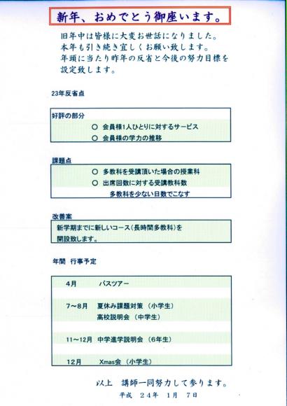 年頭にあたり、昨年の反省