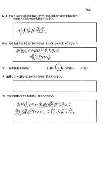 TOP›生徒・保護者様アンケート›23年卒業:中3生アンケ-ト
