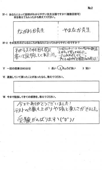 TOP生徒・保護者様アンケート23年卒業生アンケ-ト