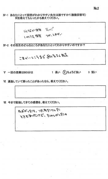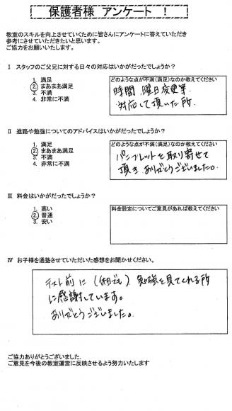TOP›生徒・保護者様アンケート›23年卒業生アンケ-ト