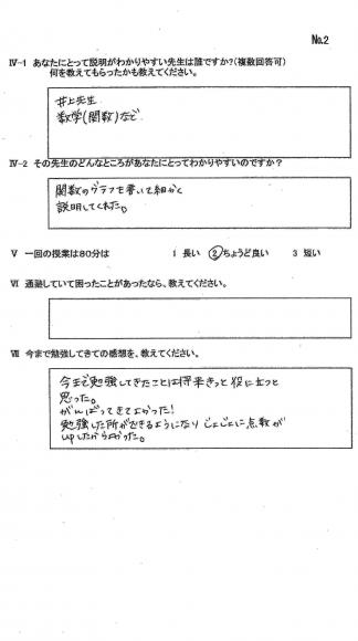 2012年07月01日 日曜日 23年卒業生アンケ-ト     ( 生徒・保護者様アンケート )
