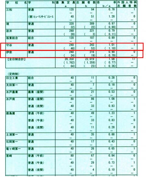画像は、クリックすると拡大します。 H25年入試倍率 つくばみらい市 守谷市 取手市