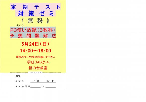 2015年05月22日 金曜日 無料定期試験対策ゼミ ( 教室からのお知らせ )