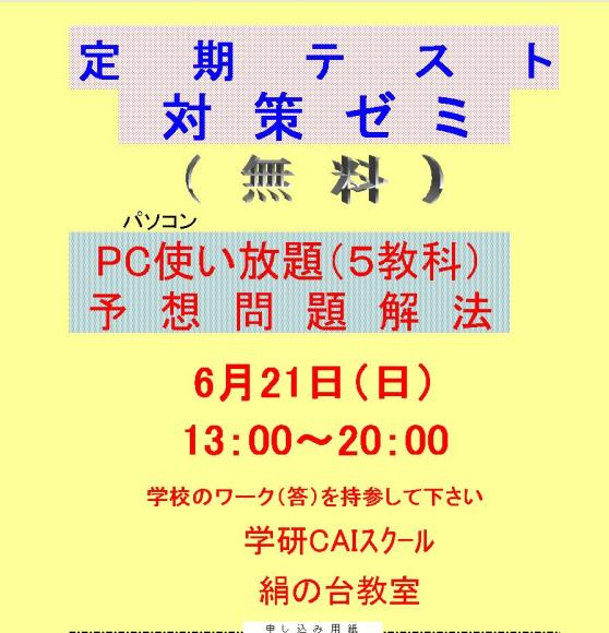 2015年06月20日 土曜日 定期テスト対策無料ゼミ ( 教室からのお知らせ )