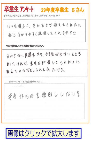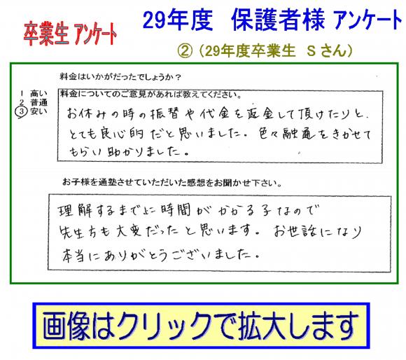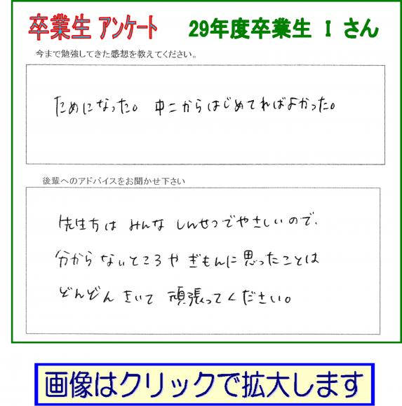 TOP›生徒・保護者様アンケート›29年度 卒業生・保護者様 アンケ-ト