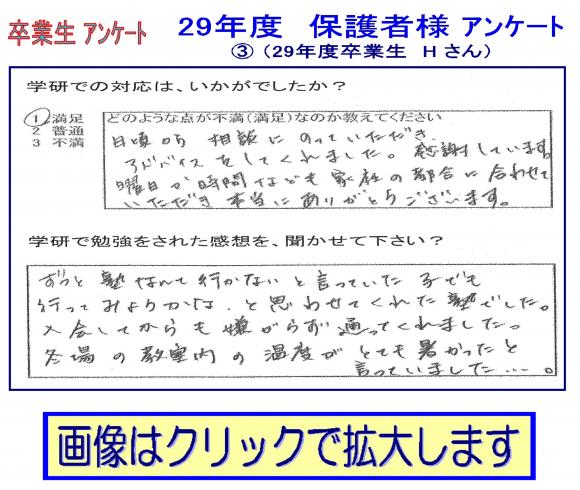 2018年03月29日 木曜日 29年度 卒業生・保護者様 アンケ-ト ( 生徒・保護者様アンケート ) |