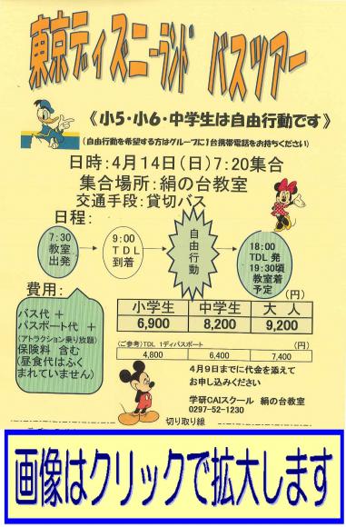 TOP›教室からのお知らせ›31年東京ディズニ-ランド・バスツア-のお知らせ