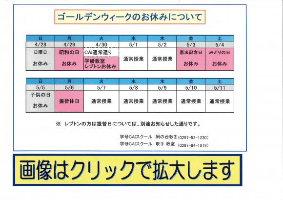 ゴ-ルデン ウイ-ク のお知らせ ( 教室からのお知らせ )