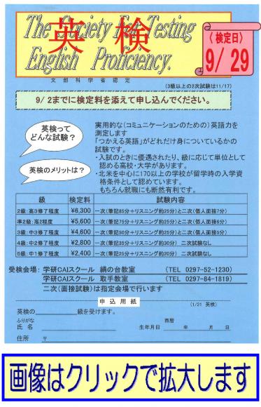TOP›教室からのお知らせ›2024年度第2回 英語検定開催