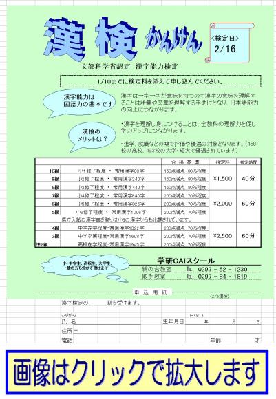 TOP›教室からのお知らせ›2月 漢字検定開催・つくばみらい