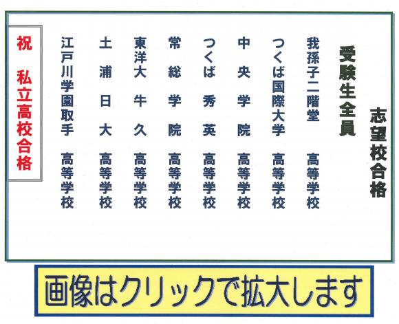 2025年03月15日 土曜日 平成6年度高校合格 学研CAI 絹の台 ( 合格実績 )