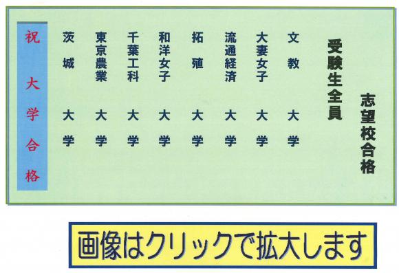 2025年03月15日 土曜日 平成 6年度 中学・大学 合格 学研絹の台 ( 合格実績 )