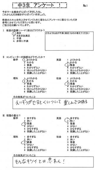 TOP›生徒・保護者様アンケート›23年卒業:中3生アンケ-ト