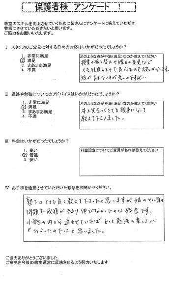 2012年05月12日 土曜日 23年卒業:中3生アンケ-ト ( 生徒・保護者様アンケート ) |