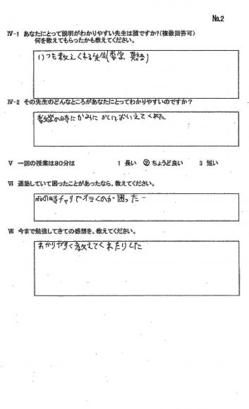 TOP›生徒・保護者様アンケート›23年卒業生アンケ-ト