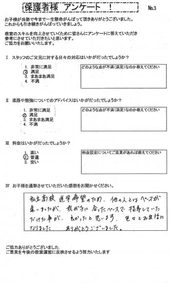 2012年07月01日 日曜日 23年卒業生アンケ-ト     ( 生徒・保護者様アンケート )