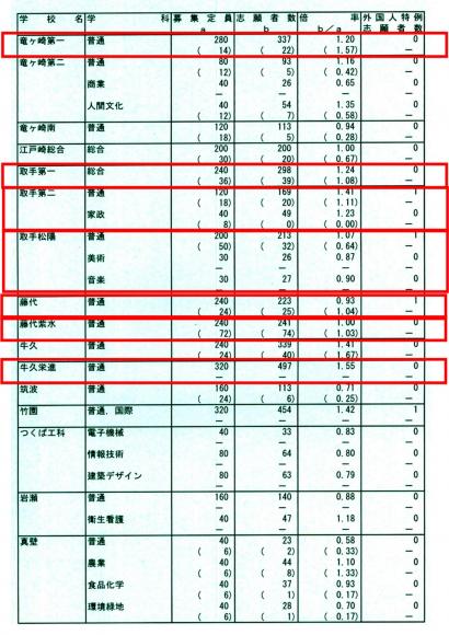 画像は、クリックすると拡大します。 H25年入試倍率 つくばみらい市 守谷市 取手市