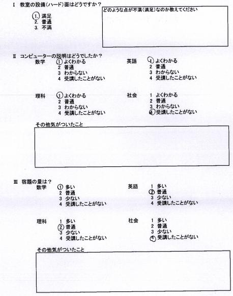 2013年04月27日 土曜日 24年度卒業生アンケ-ト (6) ( 生徒・保護者様アンケート )