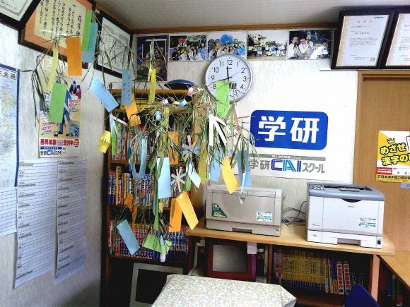 《 画像は、クリックすると拡大します》 こんにちは、学研CAIスク-ルです。 今年も七夕に、子供達が 沢山の「願い」「希望」「思い」を たくしてくれました。 子供達1人ひとりの 願いがかなうように、私達講師は さらに努力して参ります。 みんな一緒に、 夢にむかって踏み出そう。